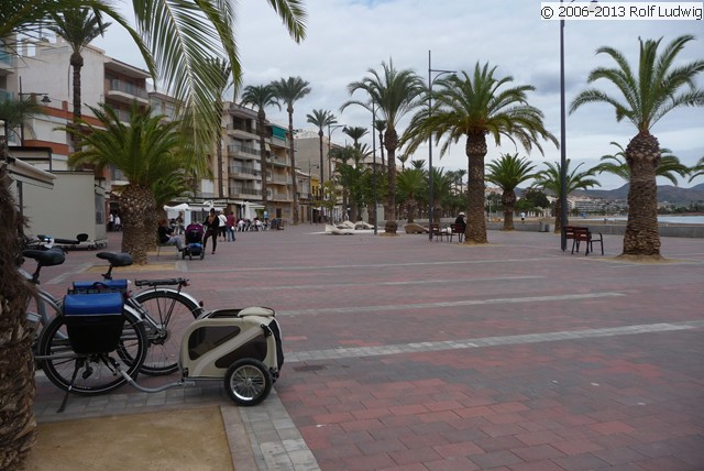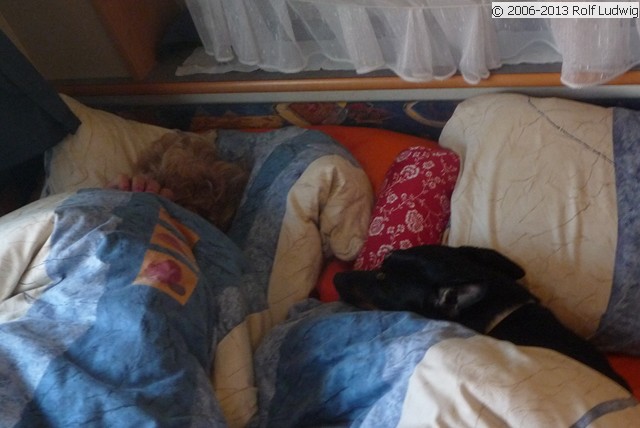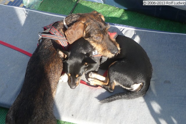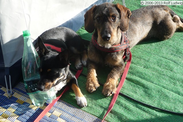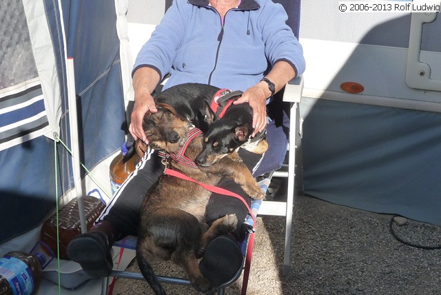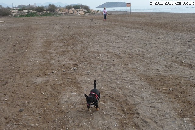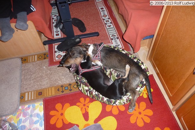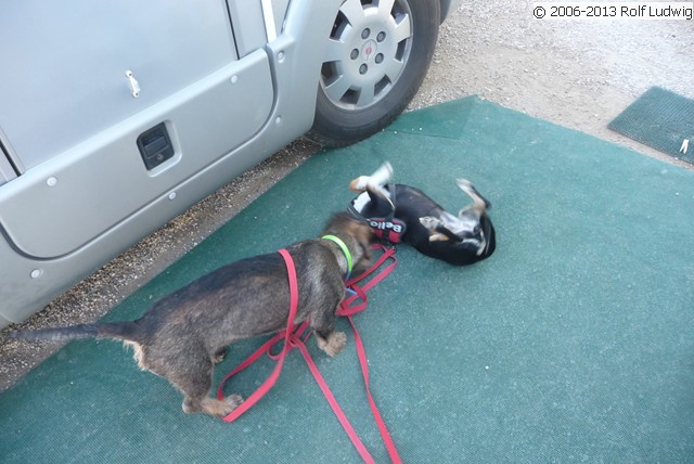 Rast in der Nähe von Pamplona. Bella benötigt etwas Bewegung. Der weiche Waldboden bereitet Bella viel Spaß. Ein wunderschöner weicher Waldboden in der Nähe von Pamplona. Jedes Jahr kommen in Nordspanien viele Windräder hinzu. Fußgängerbrücken über Autovias sieht man dank EU überall. Bella mit einer Freundin aus Isla Plana, die sie noch vom letzten Jahr kennt. Bellas Freundin gehört zum Campingladen Las Colonias in Isla Plana. Bella möchte hier gar nicht weg, aber wir müssen zum Campingplatz. Viele Silberreiher sind zur Zeit in der Rambla neben dem Campingplatz. Der neue Paseo in Puerto de Mazarrón Unsere Räder mit Bellas Anhänger auf dem Paseo. Sobald jemand von uns weg ist, wartet Bella auf Ihn. Bella wartet neben der Parzelle auf Frauchen. Bella wartet immer noch auf Frauchen. Kaum bin ich aus dem Bett, hat Bella meinen P?latz eingenommen. Bella scheint es auf meinem Platz im Bett zu gefallen. Wenn es hier regnet, bilden sich solche Pfützen. Auf dem Markt in Puerto  de Mazarrón. Auf dem Markt in Puerto  de Mazarrón. Die die im September 2012 zerstörte Rambla. Es ist schon erstaunlich welche Zerstörungskraft das Wasser hat. Hier beginnt die Zerstörung der Rambla. Der obere Teil Bolnuevos vom Kreisverkehr aus gesehen. Mariechen und Bella mit 2 schwedischen Hunden. 3 schwedische Hunde und Mariechen und die große Bella. So hat das Septemberhochwasser in der Rambla gewütet. Der schwere Beton wurde einfach weggerissen. Diesen Hund habe ich gerade mitgebracht, Rosemarie hat ihn Paul genannt. Rosemarie reibt den verfilzten Hund erst etwas sauber. Bella vorne und Paul mit Frauchen im Hintergrund. Paul liebt sein neues Frauchen. An Pauls neuem Zuhause für die nächsten 3 Monate. Noch hält sich Paul im Hintergrund. Unser Paul ist jetzt schon ein paar Tage bei uns. Paul ist ein süßer Hund mit einem tollen Charakter. Paul spielt gerne mit Bella. Im Oasis de Las Palmeras, Gäste haben gerade ihren Tisch verlassen. Bei so vielen Vögeln, ist  Paul natürlich nicht ruhig. Paul ist sicher eine Bereicherung für Bella. Auch wenn es nicht so aussieht, die Chefin ist Bella. Bella und Paul in Pauls Körbchen. Bella und Paul, wer behält die Oberhand. Bella und Paul beim Sonnen. Paul ist Bella ein guter Freund. Paul schützt seine Bella. Paul mit seinem Frauchen im Wohnwagen. Paul mit seinem Frauchen außen am Wohnwagen. Da will Bella natürlich auch sein.2013-01-22_02_Spanien Beide Hunde schlafen. Das gefällt beiden Hunden. Bella bei einer ihrer Lieblingsbeschäftigung. dem Löcherbuddeln. Und alle Löcher gehören Bella, egal wer sie gebuddelt hat. Sicht vom oberen Bolnuevo. Sicht vom oberen Bolnuevo. Sicht vom oberen Bolnuevo. Gudrun und Reiner mit Mariechen. Die letzte starke Brandung hat die Sandbank geschlossen. Man kan wieder zum anderen Ufer der Rambla gehen. Alle 100 Meter ist so ein Holzpfad mit Abspülmöglichkeit für die Füße. Der Paseo von Bolnuevo wurde im letzten Winter gebaut. So leer ist der Paseo selten., Dieser verrostete Zaun vom Campingplatz ist gerade mal zwei Jahre alt. Rechts ein Ausgang vom Campingplatz. So wie vorne sah die Rambla bis zum 29.9.2012 aus. Unter die Rohre kricht Bella gerne drunter her. Das sind die neuen Abwasserrohre in der Rambla. Ob die Rohre so einem neuen Hochwasser standhalten möchte ich bezweifeln. Die neuen größeren Rohre werden hier mit den kleineren verbunden. Unser erster Übernachtungsplatz der Rückreise in Irun an der französuischen Grenze.