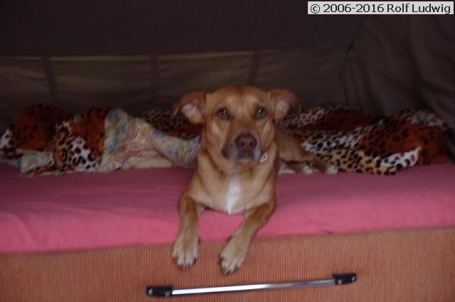 Nach langer Pause sind wir Mitte Dezember wieder in Mazarrón angekommen... ...Den Hunden gefällt das Klima... ...aber auch das freie Laufen am Strand. Jedes Jahr war Bella bisher hier. Wenn man noch nicht lange hier ist, kann man viele Gerüche entdecken. Die Hunde zeigen Frauchen den Weg zum Oasis de las Palmeras. Hier sind wir am Oasis de las Palmeras angekommen... ...hier gibt es immer etwas leckeres zu essen... ...Herrchen bestellt immer etwas, mit viel Fleisch... ...wovon wir Hunde das meiste mitbekommen. Die Hunde sind satt, nun wollen sie zum Strand. Die Sonne steht jetzt nach 16 Uhr so tief, dass die Bäume sie nicht mehr zu uns lässt... ...Die Spatzen stört das nicht, sie stürzen sich auf jeden Tisch, der gerade frei wird. Der Wohnwagen ist verkauft und Bobby muss nun im Hubbett schlafen... ...aber so langsam fühlt er sich darin wohl... ...er weiß auch inzwischen, wie aus dieser Höhe herunterspringen kann. Bella kennt das Beiit ja schon lange, bisher hat sie mit Herrchen und Frauchen darin geschlafen. Nachts ist es Mitte Januar manchmal etwas kalt, aber dafür gibt es eine zusätzliche Decke. Tagsüber ist es am Strand, in der Sonne schön warm. Da kann man schön spielen, auch wenn es diesmal nur die Bella ist. Bobby geht inzwischen sehr gerne ins Hubbett, Herrchen darf unten noch fernsehen. Ein Nachthemd braucht Bobby allerdings nicht. Hier sind wir wieder mal beim Paellaessen... ...Die Paella ist lecker, die Stimmung gut... ...und zum Schluss wird dann mit dem Mitarbeitern des Campingplatzes... ...und zum Schluss wird dann mit dem Mitarbeitern des Campingplatzes ...bei einem Glas Tinto lautstark "Y Viva Espanña" gesungen. Auf unserer Parzelle ist inzwischen fast alles abgeräumt... ...nur noch ein Reststück vom grünen Teppich liegt dort, um nicht zuviel Sand ins Fahrzeug zu tragen. Den Hunden macht das nichts... ...die fühlen sich auch so wohl. Das letzte Mal auf dem Wochenmarkt bei leckerem Café con Leche und Churros... ... Kommen wir je noch einmal hier hin? Ich wünsche es mir! Die Hunde waren immer gerne hier, sie werden den Markt sicher auch vermissen. Die Marine kommt mal wieder vorbei... ...nach einem Tag sind sie aber wieder verschwunden. Ein trauriger Anblick, ein kleiner toter Wal liegt am Strand. Image with jQuery by VisualLightBox.com v5.3